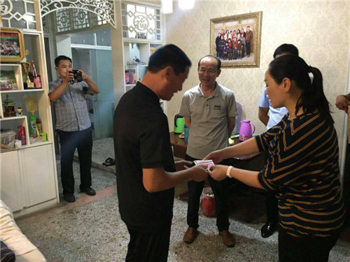 慰問中,張杰與22名參戰(zhàn)老兵、現(xiàn)役軍人家屬一起親切交流,詳細(xì)詢問他們的家庭和當(dāng)前生活情況,并給他們送上慰問金和節(jié)日的問候。在李莊社區(qū),張杰來到現(xiàn)役軍人李佳威家中看望光榮軍屬,向他們致以節(jié)日問候,對他們支持國防事業(yè)表示感謝。在王寨社區(qū)參戰(zhàn)老兵王超申的家中,張杰說,參戰(zhàn)老兵是國家的寶貴財富,沒有他們當(dāng)年的英勇奮戰(zhàn)就沒有我們現(xiàn)在幸福美滿的生活。各相關(guān)部門要特別尊重、特別關(guān)心、特別關(guān)愛和特別照顧參戰(zhàn)老兵,在全社會營造擁軍愛屬的良好氛圍。