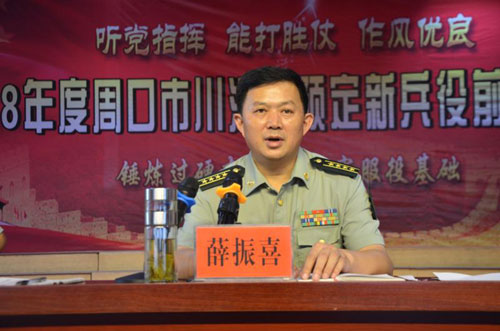 8月17日上午,川匯區(qū)預定新兵役前教育訓練動員會上,周口市征兵辦公室主任、周口軍分區(qū)副司令員薛振喜結合自身經歷,為現(xiàn)場近300名體檢、政審雙合格預征青年上了一堂生動的國防教育課,現(xiàn)場掌聲雷動。