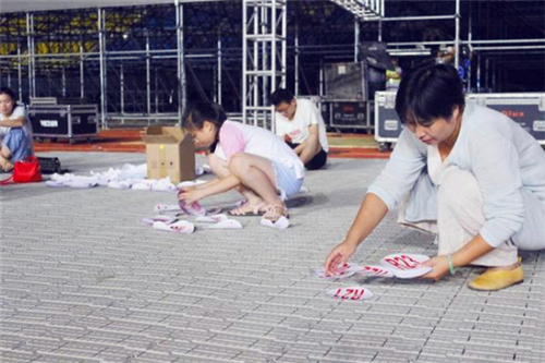 在場地的一側(cè),幾名工作人員正在全神貫注地整理一大堆號碼貼,“省運會是全省的體育盛會,能有機會參與這樣的運動會是一種榮幸,我們準確地說應(yīng)該算是志愿者,因為我們屬于義務(wù)勞動?!逼渲幸幻空f,這是細活,急不得,號碼非常多,英文中的26個字母,分大小寫,然后還和阿拉伯數(shù)字進行組合,她們的工作就是要把這些號碼捋順,防止出現(xiàn)差錯。記者注意到,場地的四周放置了很多音響,工作人員正在對播音設(shè)備進行調(diào)試,雖然還處于調(diào)試階段,但是聽起來已經(jīng)非常震撼。在場地旁邊,部分表演道具也整齊擺放著,看到這些精致的道具,開幕式當天的文藝表演精彩程度可見一斑。
