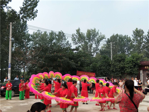 儀式前,撞寨行政村文化廣場院內(nèi)樂鼓喧天。撞寨行政村村的廣場舞表演隊、大良行政村的腰鼓表演隊、常樓的竹馬旱船表演隊、前何行政村的扇子舞表演隊等6個村扶貧政策文藝宣傳隊進行了精彩的文藝節(jié)目表演,烘托了喜慶的氣氛。