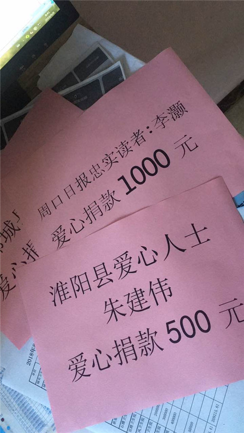 報(bào)道發(fā)出后,鄲城縣衛(wèi)計(jì)委主任付登霄第一時間作出響應(yīng),批復(fù)2000元錢資助趙家,囑咐駐村干部不能因家庭特困而導(dǎo)致孩子輟學(xué),付登霄表示將長期關(guān)注這個貧困家庭;周口日報(bào)忠實(shí)讀者李灝遠(yuǎn)在上海,看到報(bào)道后立即通過本報(bào)記者給趙家匯款1000元;淮陽愛心人士朱建偉愛心捐款500元;寧平鎮(zhèn)中心校正在組織教職員工捐款……