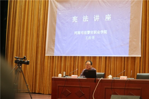 會上,省司法警官職業(yè)學院法律系主任王治荃、法學碩士孫啟河兩位教授分別從憲法的時代背景、基本內(nèi)涵、精神實質(zhì)和重要意義及依法行政的基本含義、本質(zhì)和全面推進依法行政的奮斗目標等做了精彩輔導。