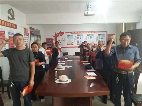 “我志愿加入中國共產(chǎn)黨,擁護黨的綱領,遵守黨的章程,履行黨員義務……”在汲水鄉(xiāng)張嶺行政村室,汲水鄉(xiāng)黨委副書記王申帶領全體黨員面對黨旗,一起重溫入黨誓詞,并學習黨章黨規(guī)。