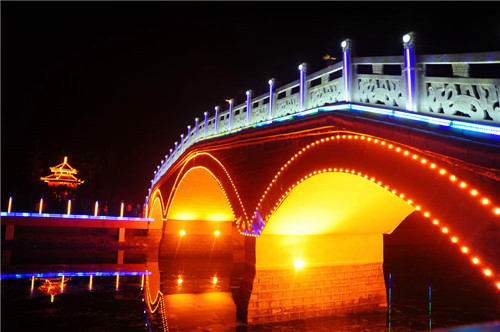統(tǒng)計(jì)數(shù)據(jù)顯示,貫穿城區(qū)“五河”的濱水景觀廊道目前已達(dá)45公里,環(huán)繞互通的水系雨污分流,清波蕩漾,千年古城活力再現(xiàn);沿岸廣場(chǎng)、游園、玉欄、花木、亭、廊、親水平臺(tái),玲瓏別致,相映成趣,形成了無數(shù)個(gè)多元空間,為市民提供了休閑健身空間和漫步快跑的理想場(chǎng)所;城區(qū)的50多座街心主題文化園,依勢(shì)而修,與沿河的美化、綠化、亮化融為一體,每天傍晚,清波蕩漾,虹橋飛架,臥波噴泉伴隨著悠揚(yáng)的音樂翩翩歡舞,“五河”上下,燈火璀璨,絢麗多彩,如夢(mèng)如幻。“九河繞真源,五湖潤(rùn)鹿邑”的生態(tài)水系景觀讓行走其間的人恍若走進(jìn)江南水鄉(xiāng),人在水上,水在畫中的美妙意境讓行走其間的人身心放松、回歸自然。