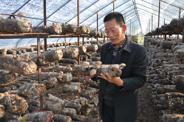 商水縣城關(guān)鄉(xiāng)瓦房莊村在省檢察院駐村工作隊(duì)的支持下,于今年9月成立合作社,投資50多萬(wàn)元發(fā)展香菇種植,一期項(xiàng)目占地12畝,建設(shè)生產(chǎn)棚12個(gè)、養(yǎng)菌棚4個(gè),頭茬香菇上市后供不應(yīng)求,帶領(lǐng)當(dāng)?shù)?0多戶群眾走上致富路。圖為技術(shù)人員正在大棚里觀察香菇長(zhǎng)勢(shì)。