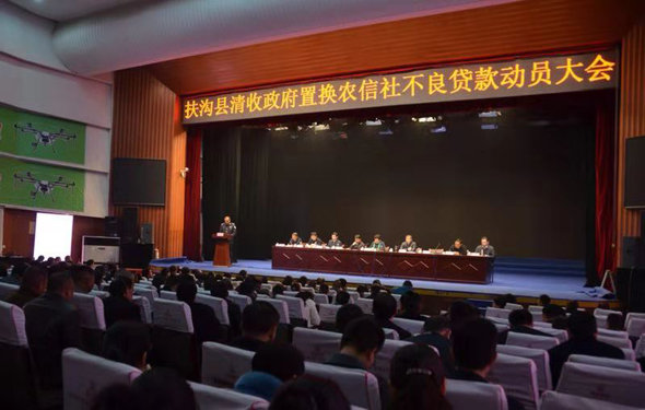11月21日,扶溝縣召開政府置換農(nóng)信社不良貸款清收工作動員會。會議貫徹落實(shí)省、市有關(guān)部署,動員全縣上下統(tǒng)一思想,提高認(rèn)識,細(xì)化措施,夯實(shí)責(zé)任,推動政府置換農(nóng)信社不良貸款清收工作深入開展、取得實(shí)效。張穎波、張峰、王偉、常青、王霄靈、陳建華、李建設(shè)等縣領(lǐng)導(dǎo)出席會議??h委副書記、政法委書記張峰主持會議。