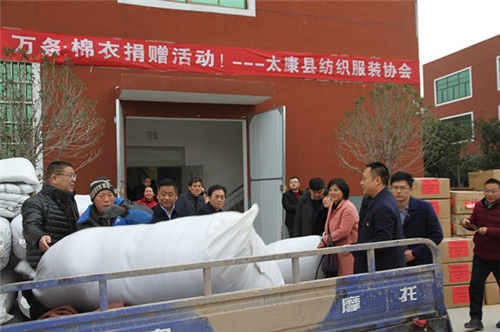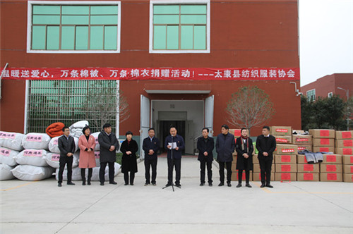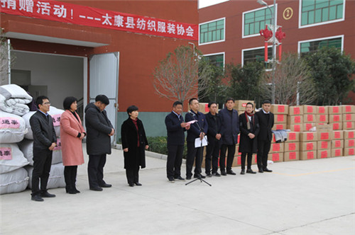 太康縣委副書記、政法委書記王程清在致辭中指出,扶貧濟(jì)困、樂善好施是中華民族的傳統(tǒng)美德,通泰紡織、銀鑫棉業(yè)、萬利源棉業(yè)等縣紡織協(xié)會(huì)成員單位通過捐款捐物、產(chǎn)業(yè)幫扶、就業(yè)幫扶、基礎(chǔ)設(shè)施幫扶等多種形式投入到脫貧攻堅(jiān)行動(dòng)中,幫助貧困群眾發(fā)展生產(chǎn)、改善生活條件、擺脫疾病困擾、完成學(xué)業(yè)夢想、為貧困群眾早日脫貧貢獻(xiàn)出自己的一份力量,并為他們捐贈(zèng)棉衣棉被的善舉表示感謝。