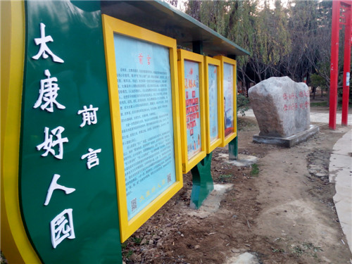 為把好人精神鐫刻在太康發(fā)展和進(jìn)步的進(jìn)程中,把太康建設(shè)成為好人之城、文明之城、和諧之城、美麗之城、幸福之城,從2018年9月起,太康“好人園”經(jīng)過緊鑼密鼓地籌建,如今開園迎賓。好人園緊扣“好人”主題,以道德風(fēng)尚建設(shè)為主線,在休閑公園的基礎(chǔ)上,秉承“因地制宜、因勢(shì)利導(dǎo)”的原則,堅(jiān)持寓教于園、寓教于景、寓教于樂,以小處著手、局部微調(diào)的手法,通過“好人步道”“好人亭”“好人樹”“好人大舞臺(tái)”“好人精神長(zhǎng)廊”五大版塊,將道德風(fēng)尚高地建設(shè)與公園的整體風(fēng)格和功能定位完美結(jié)合。好人園兼顧了公園本身特色與文化傳播需要,利用林蔭小道,以石、亭、牌等基礎(chǔ)設(shè)施為載體,圖文并茂地展示太康近年來獲得國家和省級(jí)表彰的道德典型、身邊榜樣的先進(jìn)事跡,一步一景,隨景賦形。市民在游園過程中,潛移默化地接受“真、善、美”的教育和熏陶,激發(fā)人們見賢思齊,榜樣的引領(lǐng)作用不斷放大。