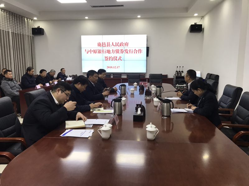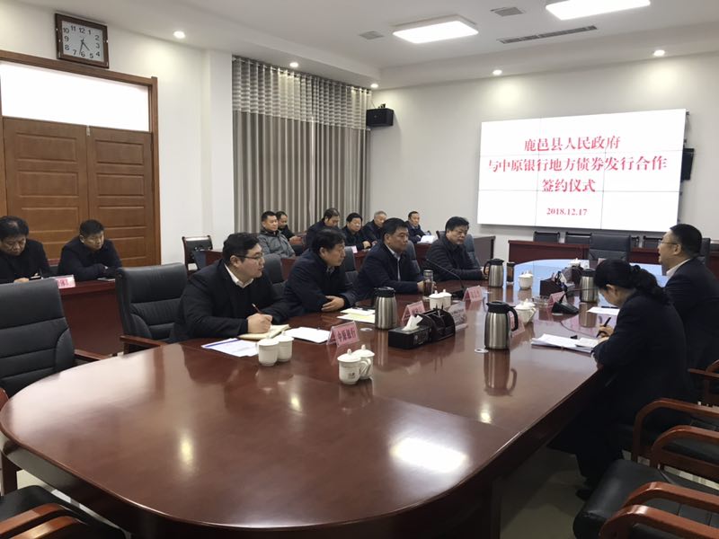 12月17日,鹿邑縣人民政府與中原銀行地方債券發(fā)行合作簽約儀式舉行。縣委常委、常務(wù)副縣長陸志杰,老子學院黨組副書記、交通局局長王初立,中原銀行周口分行黨委副書記、副行長周朝陽出席簽約儀式??h財政局、教體局、住建局、林業(yè)局、發(fā)改委、老子文化產(chǎn)業(yè)園及投資公司等相關(guān)單位負責同志參加會議。