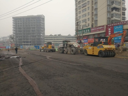 記者今日走訪漢陽(yáng)路中段(穎河路-建設(shè)路)看到,目前該路段機(jī)動(dòng)車道已鋪上黑色的混凝土物質(zhì),人行道則是壓實(shí)過(guò)的土路。壓路機(jī)等設(shè)備??吭诘缆穬深^,并未啟動(dòng),有兩臺(tái)挖掘機(jī)及數(shù)十名工人在人行道上,鋪設(shè)下水道。施工路段內(nèi),有不少菜販在沿街叫賣。