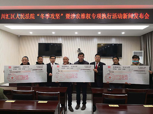 12月26日下午,川匯區(qū)人民法院召開“冬季攻堅(jiān)”暨涉農(nóng)維權(quán)專項(xiàng)活動(dòng)新聞發(fā)布會(huì)。周口日?qǐng)?bào)等新聞媒體和川匯區(qū)法院執(zhí)行警務(wù)局40余名干警參加了座談會(huì)。發(fā)布會(huì)現(xiàn)場(chǎng),共為三名農(nóng)名工代表發(fā)放自行款21.5萬元。