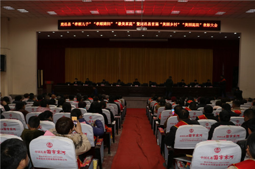 12月29日,鹿邑縣“孝順兒子”“孝順媳婦”“最美家庭”暨首屆“美麗鄉(xiāng)村”“最美庭院”表彰大會(huì)在縣委學(xué)校一樓報(bào)告廳召開??h領(lǐng)導(dǎo)付吉廣、武衛(wèi)東、劉銀、宋克言等出席會(huì)議??h委宣傳部、文明辦、縣總工會(huì)、縣婦聯(lián)、縣委農(nóng)辦、縣扶貧辦等部門負(fù)責(zé)人與來(lái)自全縣各鄉(xiāng)鎮(zhèn)辦事處的300多名干部群眾代表參加會(huì)議。