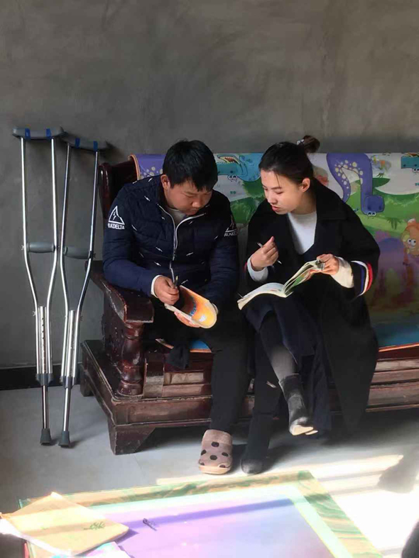 陳陽(yáng)買來(lái)學(xué)習(xí)資料和字帖,劉璐璐買來(lái)練習(xí)題,讓丁振偉學(xué)習(xí)。
