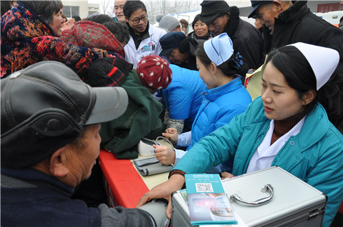 正在排隊(duì)量血壓的馬河村村民馬長運(yùn)說:“我今年70多歲,血壓有點(diǎn)高,聽說這 里有義診活動(dòng),一大早便來這里等待了?!?/p>
