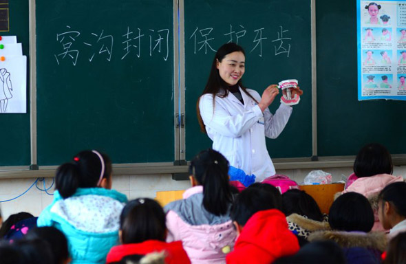 為加強(qiáng)口腔疾病健康教育和健康促進(jìn)工作,提高兒童口腔疾病防治知識(shí)知曉率,近日,鄲城縣疾控中心組織口腔專業(yè)技術(shù)人員,到第三實(shí)驗(yàn)小學(xué)開展“鄲城縣健康口腔助成長口腔健康教育活動(dòng)”和“鄲城縣兒童口腔疾病綜合干預(yù)項(xiàng)目進(jìn)校園活動(dòng)”。在活動(dòng)現(xiàn)場,口腔醫(yī)師為二年級(jí)學(xué)生上了三場生動(dòng)的口腔健康教育課,詳細(xì)講解口腔疾病防治知識(shí)。