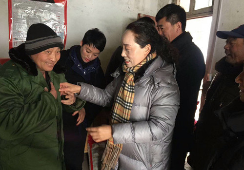 每到一處,代表們都為老人們帶去大米、食用油,方便面、棉衣、棉被、棉鞋等慰問品和真誠的問候。五保老人岳作貴現(xiàn)年63歲,患有強(qiáng)直性脊柱炎,常年臥床,生活不能自理,由弟弟岳中崗照顧其生活起居。當(dāng)薛華杰、趙晨光等人大代表將大米、食用油,方便面等送到岳作貴家,并為岳作貴換上新棉大衣時,岳作貴熱淚盈眶地說:"感謝你們大冷天來看望我!感謝共產(chǎn)黨,感謝人大代表……"