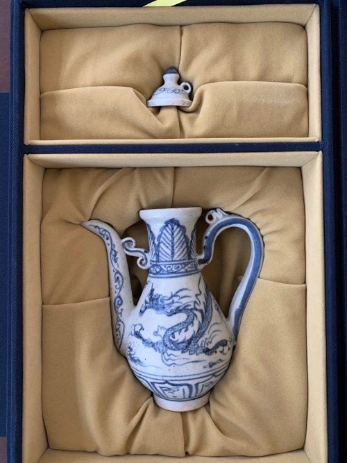 記者注意到,這件海撈元代青花瓷器,保存完整,造型美觀。瓷器中部繪有一條在云中翻飛的龍,口沿上部飾蕉葉紋,底部有蓮瓣紋,器物完整,造型精美。據(jù)了解,“海撈瓷”是收藏市場(chǎng)上對(duì)于從海底打撈出水的瓷器的一種稱謂,特指古代“海上絲綢之路”和“海上香瓷之路”開(kāi)始以后,中國(guó)對(duì)外貿(mào)易途中,在南海海域觸礁沉船所遺留的各類外銷陶瓷。市博物館館長(zhǎng)周建山介紹,在歷史上,中國(guó)著名的瓷器就是經(jīng)由“海上絲綢之路”銷往各國(guó),這些“海撈”不但具有文物歷史價(jià)值,還反映中國(guó)人通過(guò)這條海上絲綢之路,走向世界各地的重要證據(jù)。