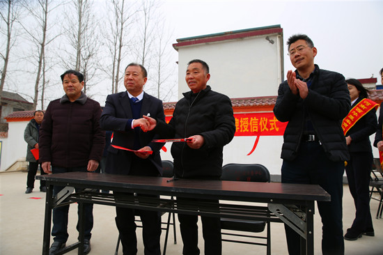 崗趙村是周口市行政服務中心幫扶的貧困村。去年11月份,駐村第一書記李文杰得知西華廈農(nóng)商村鎮(zhèn)銀行已開始在村一級評定設立“鄉(xiāng)村振興示范點”,立即與該行負責人取得聯(lián)系、積極溝通。銀行方面經(jīng)過認真考察,最終確定在崗趙“設點”。25日在崗趙村部舉行的授牌授信儀式上,西華縣人民銀行有關負責人為崗趙村授予“鄉(xiāng)村振興示范點”牌匾,西華廈農(nóng)商村鎮(zhèn)銀行負責人與崗趙村負責人簽訂了授信協(xié)議書。周口市行政服務中心和葉埠口鄉(xiāng)政府負責人都熱情致辭,百余名村民代表見證了這一激動人心的時刻。準備做早餐生意的村民趙合成說:“咱農(nóng)民貸款也不用再跑冤枉路、花冤枉錢,這個‘點’設得真中!”
