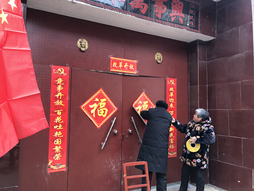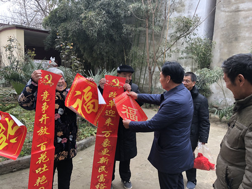 據(jù)了解,當天下午時莊村黨支部訂制的3000多套春聯(lián),免費贈給448戶村民。記者看到,這些春聯(lián)的內(nèi)容都是承載著黨和政府的關(guān)懷,有的是歌頌改革開放的,有的是幸福報黨恩的。該村村民朱在靈領(lǐng)到春聯(lián)后立刻把春聯(lián)拿回家,他將門頭擦干凈后把春聯(lián)貼了上去。在門口懸掛著的國旗的襯托下,顯得格外喜慶?!按謇锩赓M發(fā)這種帶黨徽的春聯(lián)已經(jīng)第三年了,這種春聯(lián)傳遞了黨的好聲音,推動了群眾對黨的擁護,現(xiàn)在村民的精神面貌也貌煥然一新?!敝煸陟`高興地說。