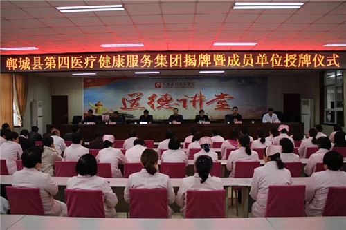 1月30日,鄲城縣第四醫(yī)療健康服務(wù)集團(tuán)揭牌暨成員單位授牌儀式,在該集團(tuán)牽頭醫(yī)院鄲城縣婦幼保健院會(huì)議室舉行??h衛(wèi)計(jì)委黨組書記、主任付登霄,副主任黃玉珍、劉清俊,辦公室主任楊光貞,鄲城縣第四醫(yī)療健康服務(wù)集團(tuán)理事長(zhǎng)、縣婦幼保健院院長(zhǎng)亢國(guó)良,副院長(zhǎng)楊軍、王斌出席儀式,并為第四醫(yī)療健康服務(wù)集團(tuán)揭牌,為第四醫(yī)療健康服務(wù)集團(tuán)其他成員單位授牌。黃玉珍主持儀式。
