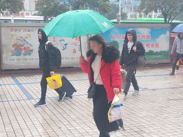 1月30日,農(nóng)歷臘月二十五,上午下起了大雨,在周口汽車客運(yùn)總站,一些從外地返鄉(xiāng)的乘客加快了回家過(guò)年的步伐。