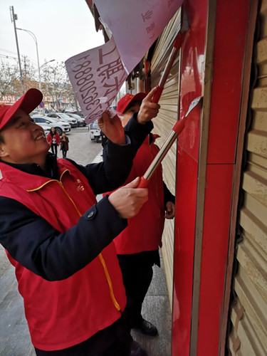 2月1日,川匯區(qū)大街小巷處處可以見到各單位志愿者忙碌的身影。當(dāng)天是星期五,該區(qū)“市容工作日”活動照常進行,統(tǒng)一身穿紅馬甲的志愿者們帶著清潔工具,認(rèn)真開展小廣告清理等環(huán)境綜合整治工作,打造整潔清爽的城市環(huán)境,迎接新春佳節(jié)的到來。