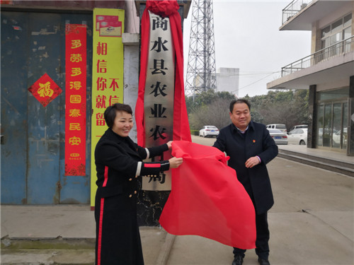 何海中和縣農(nóng)業(yè)農(nóng)村局負(fù)責(zé)人靳紅花為新成立的中共商水縣委農(nóng)村工作領(lǐng)導(dǎo)小組辦公室和商水縣農(nóng)業(yè)農(nóng)村局揭牌。