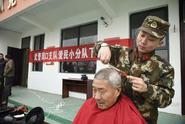 鄉(xiāng)村老年人們的身體狀況牽動(dòng)著支隊(duì)領(lǐng)導(dǎo)的心,他們派出支隊(duì)醫(yī)務(wù)人員走進(jìn)村落,在簡(jiǎn)易的地方辦起巡診。藥盒上的細(xì)心標(biāo)記,手把手的診療,情真意切囑咐,都是官兵們真切的表達(dá)。支隊(duì)理發(fā)員帶著理發(fā)工具和一顆赤誠(chéng)的心來(lái)到了村里,為老人們邊理發(fā)邊嘮家常,老人臉上樂(lè)開了花兒,笑著說(shuō)“我家孫子和你大小差不多哩!”村里的孩子們也很喜歡這群穿著軍裝的叔叔們,不僅因?yàn)樗麄兠看蝸?lái)都會(huì)送上精美學(xué)習(xí)用品,先進(jìn)的多媒體設(shè)備,更因?yàn)樗麄兩砩宪娙颂赜械呢?zé)任與擔(dān)當(dāng)。