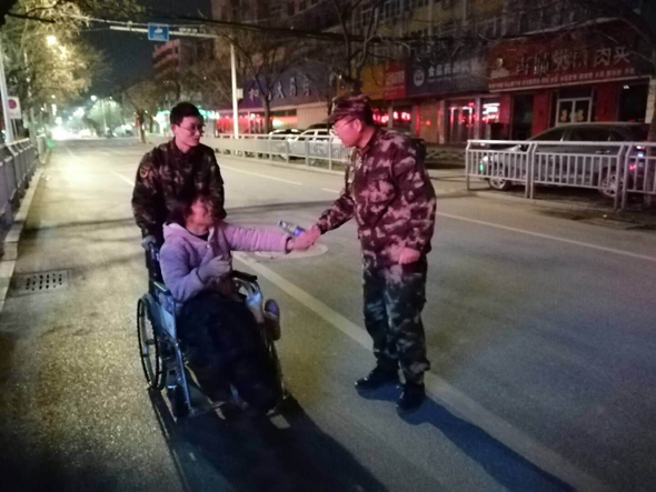 人民軍隊(duì)愛(ài)人民,無(wú)論山高水遠(yuǎn),歲暮天寒。2月18日凌晨1時(shí)許,武警周口支隊(duì)政委韓偉鋒查勤歸來(lái),在支隊(duì)大門口恰巧遇到一位大姐獨(dú)自一人搖著輪椅艱難前行。當(dāng)晚氣象局預(yù)報(bào)有降雪,實(shí)時(shí)氣溫也只有-4℃。夜深人靜,天凝地閉,韓政委有些擔(dān)憂這位大姐的安全,連忙上前詢問(wèn)情況,并步行推著輪椅將大姐送至目的地。其實(shí),這件事只是武警周口支隊(duì)愛(ài)民助民工作的一個(gè)縮影。