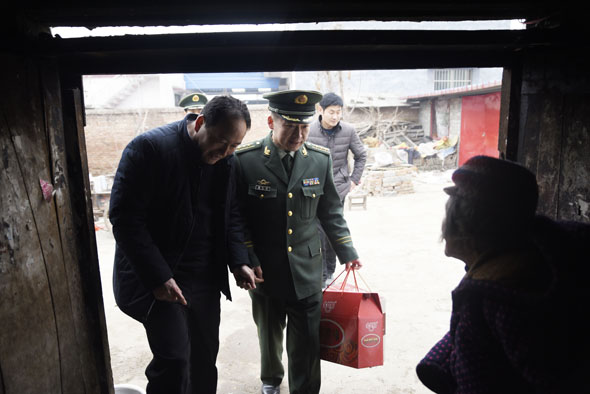 商水縣湯莊鄉(xiāng)付樓村是武警周口支隊(duì)的精準(zhǔn)扶貧村,今年春節(jié)期間,武警周口支隊(duì)支隊(duì)長(zhǎng)楊大嶺帶著周口支隊(duì)愛(ài)民小分隊(duì)再次來(lái)到了村中,送上大米、面粉、油等生活物資,更是送來(lái)了生活上的幫助和情感上的關(guān)懷。