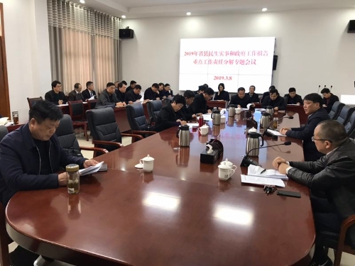 陸志杰要求各單位要強(qiáng)化責(zé)任擔(dān)當(dāng),具體方案、具體責(zé)任人,做到可分解、可督查、可考核,確保各項(xiàng)工作落細(xì)落實(shí);要精準(zhǔn)把握省、縣兩級(jí)工作要求,對(duì)持續(xù)開展的工作要好基礎(chǔ),對(duì)明確時(shí)間、要求的工作要把握時(shí)間、節(jié)點(diǎn)做好統(tǒng)籌推進(jìn);要抓好配合,對(duì)任務(wù)分解的主責(zé)任單位要做任務(wù)的協(xié)調(diào)、統(tǒng)籌,相關(guān)責(zé)任單位要做好配合,形成部門聯(lián)動(dòng)工作機(jī)制,確保各項(xiàng)任務(wù)能夠均衡、健康、全面開展;要做好監(jiān)督檢查,縣政府辦要形成一個(gè)督導(dǎo)、檢查、考核制度,對(duì)責(zé)任單位形成每一個(gè)月以通報(bào),每個(gè)季度要組織召開一次匯報(bào)會(huì),聽取完成工作進(jìn)度,確保各項(xiàng)工作能說一件、干一件、成一件圓滿完成2019年省、縣民生實(shí)事和政府工作報(bào)告重點(diǎn)工作任務(wù)。