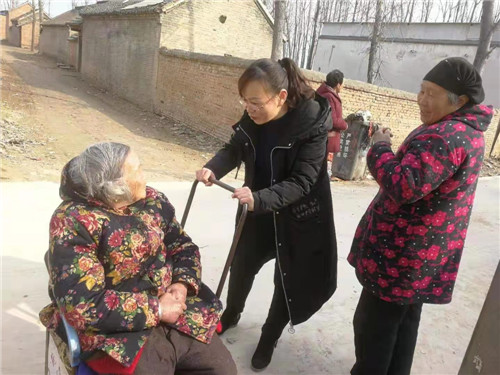 鏗鏘扶貧路,拳拳民生情。林娜加班加點(diǎn),扎實(shí)的作風(fēng)不僅有效推動(dòng)了幫扶工作的順利推進(jìn),而且也換來(lái)了當(dāng)?shù)卮迕竦摹包c(diǎn)贊”。為推進(jìn)老人戶合吃合住問(wèn)題,林娜三番五次去做工作,段屯行政村于樓村86歲的老人王全英,年邁不能自理,遭兒子嫌棄,3個(gè)兒子都不愿贍養(yǎng)老人。一次,陰雨天,老人不慎跌倒,摔傷胳膊,兒女們都不管不顧,林娜在走訪的過(guò)程中了解情況后,立即幫老人買(mǎi)來(lái)膏藥貼上,同時(shí)開(kāi)始做兒女的思想工作,“家有一老似有一寶,孝親愛(ài)老是中華民族的傳統(tǒng)美德”,經(jīng)過(guò)林娜再三做思想工作,三個(gè)兒子茅塞頓開(kāi),愿意贍養(yǎng)老人,最終老人在三個(gè)兒子家輪流吃住。在林娜及隊(duì)員的共同努力下,段屯行政村不僅老人戶全部合戶,而且在全村掀起了爭(zhēng)做賢孫孝媳的局面。一名老黨員袁士成,每次見(jiàn)了工作隊(duì)都豎起大拇指說(shuō):“兒女好,兒女好,兒女再好不如共產(chǎn)黨對(duì)俺好”。