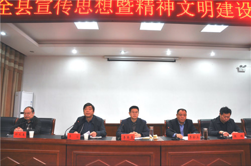 就如何做好今年的宣傳思想和精神文明建設(shè)工作,李本磊要求,要用好“學(xué)習(xí)強(qiáng)國(guó)”平臺(tái),強(qiáng)化理論武裝;要建好新時(shí)代文明實(shí)踐中心、鄉(xiāng)村志愿服務(wù)中心、縣級(jí)融媒體中心,筑牢基層陣地;要抓好“三城兩縣聯(lián)創(chuàng)”“六村共建”“三個(gè)起來”等三項(xiàng)活動(dòng),普惠人民群眾;要突出工作主線,聚焦主題宣傳;要堅(jiān)持團(tuán)結(jié)鼓勁,營(yíng)造輿論強(qiáng)勢(shì);要立足凝神聚氣,倡樹文明新風(fēng);要發(fā)揮比較優(yōu)勢(shì),打造文化強(qiáng)縣;要著力增強(qiáng)“四力”,建設(shè)一流隊(duì)伍。