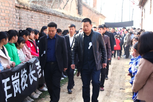 院內(nèi)正廳上方,懸掛著黑底白字的橫幅“沉痛悼念王崗?fù)尽?,院外道路兩?cè),擺滿了人們敬獻(xiàn)的黑紗、花圈。市教體局領(lǐng)導(dǎo)來了,縣政府副縣長(zhǎng)肖煒來了,縣教體局局長(zhǎng)劉現(xiàn)營(yíng)來了;局黨組成員、各鄉(xiāng)校校長(zhǎng)來了,王崗最愛的學(xué)生、同事來了;學(xué)生家長(zhǎng)也來了……大家胸佩白花,向這位愛崗敬業(yè)的基層校長(zhǎng)表示崇高的敬意和深切的哀悼。