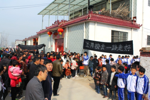 “教育師魂鑄就止步盛年悲矣,杏壇大愛揮灑平民風(fēng)范偉哉!”3月24日上午,鄲城縣東風(fēng)鄉(xiāng)鄭莊行政村大王莊一個(gè)普通的農(nóng)家院內(nèi)外,挽幛輕垂,哀樂低回。數(shù)千名師生、群眾自發(fā)前來送別年僅37歲的該村小學(xué)校長(zhǎng)王崗。