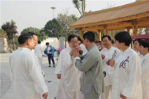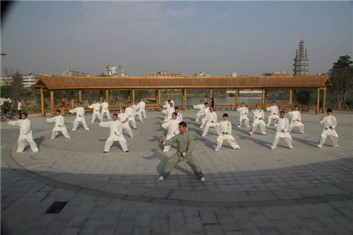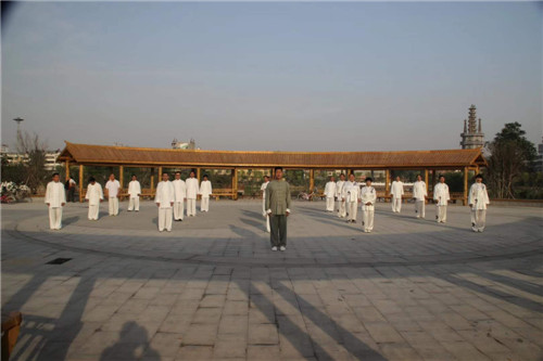 在李廣的示范帶動下,縣財政局先后又有10多人加入其中,形成了一個龐大的太極拳義務(wù)傳授團(tuán)隊。幾年來,李廣團(tuán)隊每天早晚堅持頭頂著晨曦、沐浴著夕陽,義務(wù)傳授太極拳,弘揚傳播老子文化,乘借著鹿邑既定的“產(chǎn)業(yè)興城、文化立縣”發(fā)展戰(zhàn)略東風(fēng),持續(xù)為唱響“老子故里、道家之源、道教祖庭、李姓之根”四大文化品牌添磚加瓦、吶喊助威。