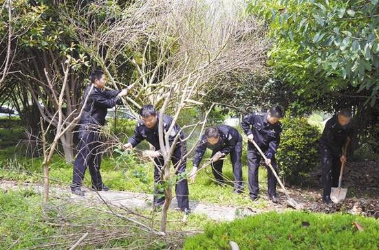 我市召開創(chuàng)建國家衛(wèi)生城市百日沖刺動(dòng)員大會(huì)以來,市公安局犯罪偵查支隊(duì)指揮室黨支部號(hào)召黨員民警從身邊做起、從小事做起、從點(diǎn)滴做起,以實(shí)際行動(dòng)積極參與“創(chuàng)衛(wèi)”工作。圖為4月28日上午,民警在營區(qū)修剪花木、清掃殘葉。記者 竇娜 攝