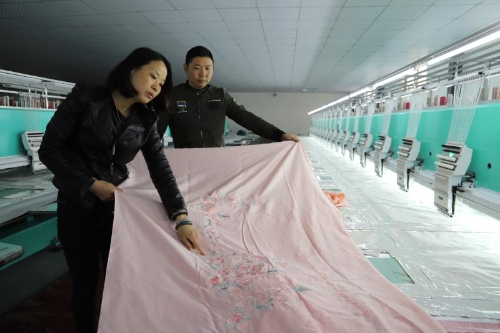 同時,城郊鄉(xiāng)發(fā)揮基層黨員干部和在外創(chuàng)業(yè)成功人士的廣泛人脈資源和經(jīng)濟(jì)優(yōu)勢,引導(dǎo)社會投資發(fā)展產(chǎn)業(yè)助力脫貧攻堅。谷集行政村美紡科技有限公司就是典型個例。石永紅、石永華、石磊姐弟3人來自江蘇南通,他們盯上了城郊鄉(xiāng)的富余勞動力,投資800萬元建設(shè)了近2000平方米的紡繡車間,20臺國內(nèi)先進(jìn)設(shè)備可以利用全電腦操作繡出12種顏色的繡品。車間固定用工34人,其中建檔立卡貧困戶2人。只需要看著電腦控制臺、換布貼布、穿針引線,每人每天工資便可達(dá)到150元。