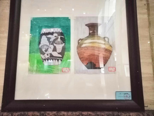在文物繪畫作品展出區(qū)域,孩子們親手繪制出的近百幅文物繪畫作品,用畫筆與歷史對話,感悟著中華民族先人們的智慧結晶。