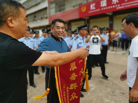 當(dāng)日上午,一臺(tái)挖掘機(jī)停在規(guī)劃好的空地上,警戒線內(nèi)是需要硬化的路面區(qū)域,困擾附近居民出行的問(wèn)題終于要解決了。附近居民自發(fā)向公安民警和社區(qū)干部送上兩面寫著“創(chuàng)衛(wèi)先鋒 造福百姓”“一心為民 服務(wù)群眾”的錦旗,表達(dá)他們的感謝之情?!叭罕娛莿?chuàng)衛(wèi)的參與者也是受益者,等路面硬化后,希望大家和民警、社區(qū)干部一起將社區(qū)衛(wèi)生打掃好,保持好,為建成高標(biāo)準(zhǔn)衛(wèi)生小區(qū)共同努力?!睏罱苷f(shuō)。
