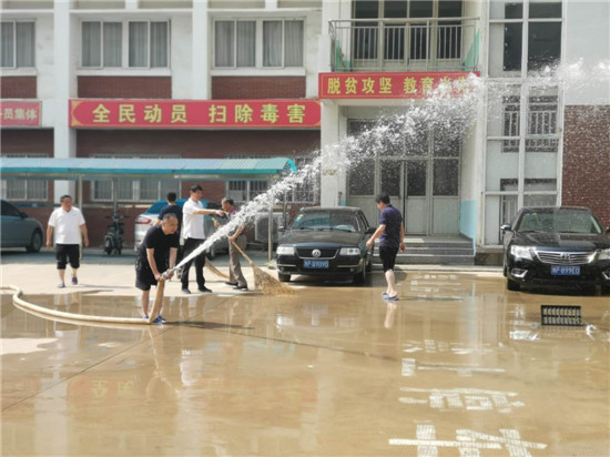 雖然天氣炎熱,大家汗流浹背,卻熱情高漲,積極性很高,大家紛紛拿起掃帚、抹布,提上水桶,充分發(fā)揚(yáng)不怕臟、不怕累的精神,對(duì)院內(nèi)道路、車棚、宣傳欄、綠化帶等處進(jìn)行沖洗、清掃,同時(shí)對(duì)各樓層門窗玻璃、消防栓、廁所等進(jìn)行集中清理……經(jīng)過(guò)兩個(gè)多小時(shí)的辛勤勞動(dòng),各辦公室窗明幾凈,廁所衛(wèi)生干凈整潔,車棚車輛擺放整齊,院內(nèi)環(huán)境煥然一新。
