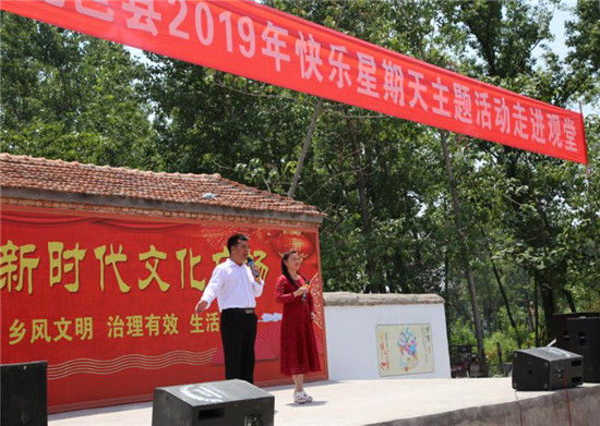 “這戲唱的真帶勁!聽得真癮!”雖然演出已經(jīng)結(jié)束,但郭窯村75歲的村民郭思勤依然坐在原地,久久不愿離去。 據(jù)悉,為確?!翱鞓沸瞧谔臁敝黝}活動(dòng)取得實(shí)效,鹿邑縣委宣傳部、統(tǒng)戰(zhàn)部高度重視,統(tǒng)籌各種資源,動(dòng)員全縣文聯(lián)和文藝八大協(xié)會(huì)等各方力量,創(chuàng)新活動(dòng)載體,豐富活動(dòng)形式,不斷深化群眾性精神文明創(chuàng)建活動(dòng),培育和踐行社會(huì)主義核心價(jià)值觀,不斷增強(qiáng)群眾的幸福感和獲感。鹿邑縣委宣傳部社宣科負(fù)責(zé)人寧偉在現(xiàn)場表示:“我們今年精心準(zhǔn)備了40場文藝大餐,每周都會(huì)組織文化、科技、醫(yī)療等戰(zhàn)線上的志愿者下鄉(xiāng)進(jìn)村進(jìn)行文藝演出、開展志愿服務(wù),讓基層的文化活動(dòng)更加豐富多彩,讓群眾在家門口就能享受到更多貼心的服務(wù)?!?