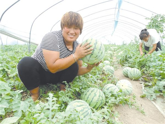 日前,沈丘縣周營(yíng)鎮(zhèn)一大棚生態(tài)西瓜種植基地內(nèi),村民正在采摘搬運(yùn)西瓜。近年來(lái),在推進(jìn)產(chǎn)業(yè)脫貧過(guò)程中,該鎮(zhèn)積極調(diào)整農(nóng)業(yè)產(chǎn)業(yè)結(jié)構(gòu),規(guī)模有序流轉(zhuǎn)土地,科學(xué)種植生態(tài)瓜果。目前,大棚生態(tài)西瓜種植已成為帶動(dòng)農(nóng)民增收致富的“甜蜜產(chǎn)業(yè)”。