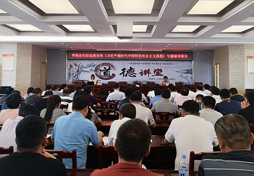 為進(jìn)一步推動(dòng)鄲城縣紀(jì)檢監(jiān)察干部深入學(xué)習(xí)貫徹黨的十九大精神,自覺用“習(xí)近平新時(shí)代中國特色社會(huì)主義思想”武裝頭腦、指導(dǎo)實(shí)踐、推動(dòng)工作,按照全縣紀(jì)檢監(jiān)察系統(tǒng)“鑄鐵軍、塑形象、再出發(fā)”活動(dòng)計(jì)劃安排,6月28日,鄲城縣紀(jì)委邀請縣委黨校教員鄭紅霞為全縣紀(jì)檢監(jiān)察干部做了一場“習(xí)近平新時(shí)代中國特色社會(huì)主義思想”專題輔導(dǎo)報(bào)告。