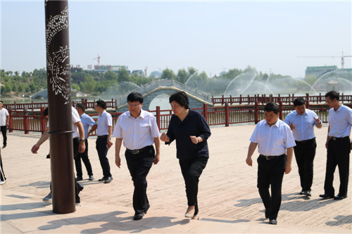 路云一行先后來到上清湖公園、閆溝河公園、陳摶公園提升暨古城墻恢復(fù)項目現(xiàn)場以及老子學(xué)院、渦河濕地公園等地進(jìn)行實地察看,對鹿邑縣的國土綠化、“百城提質(zhì)建設(shè)工程”、城市規(guī)劃建設(shè)及精細(xì)化管理等相關(guān)工作給予充分肯定。