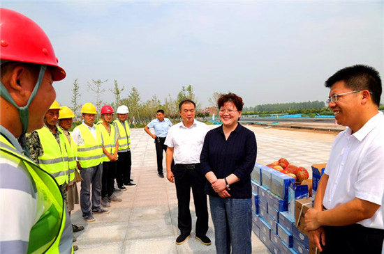 炎炎夏日,酷熱難當。張穎波一行為高鐵施工人員送來了總價值約2萬元藿香正氣口服液、太極水等藥品和西瓜,并送來了扶溝人民對施工人員戰(zhàn)酷暑、保進度的親切慰問。該項目負責人感動地說,“張縣長對高鐵項目時刻牽掛于心。過年時陪著工人吃餃子,三伏天送‘清涼’,大家心里很溫暖。”該負責人表示,要把溫暖傳導給一線施工人員,化作工作的動力,加班加點干,保質保量干,確保扶溝人民高鐵夢如期夢圓。