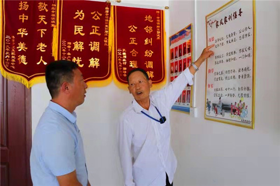 老人說,他是2018年初加入“幸福調(diào)解室”的,“當(dāng)時(shí),我剛從外地回來,路過楊廟看到有人臨街房前懸掛調(diào)解室招牌,就報(bào)名加入了調(diào)解室隊(duì)伍。”