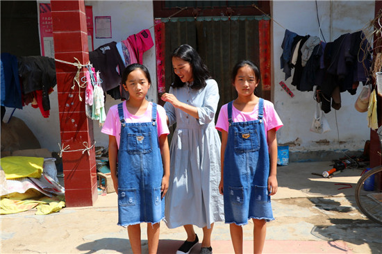 這次來看望“女兒”,王冬特意給小姐妹倆購買了幾件新衣服、鞋和一些書籍。穿上新衣服和鞋子,姊妹倆高興得手舞足蹈?!巴趵蠋煟愦齻兘o親閨女一樣,每次來都不忘給她們買東西。我們真不知道向你說啥好了?!笨粗鴤z孫女被王冬打扮的如此美麗好看,王肖晴的爺爺王客臣感動得連連向王冬道謝。