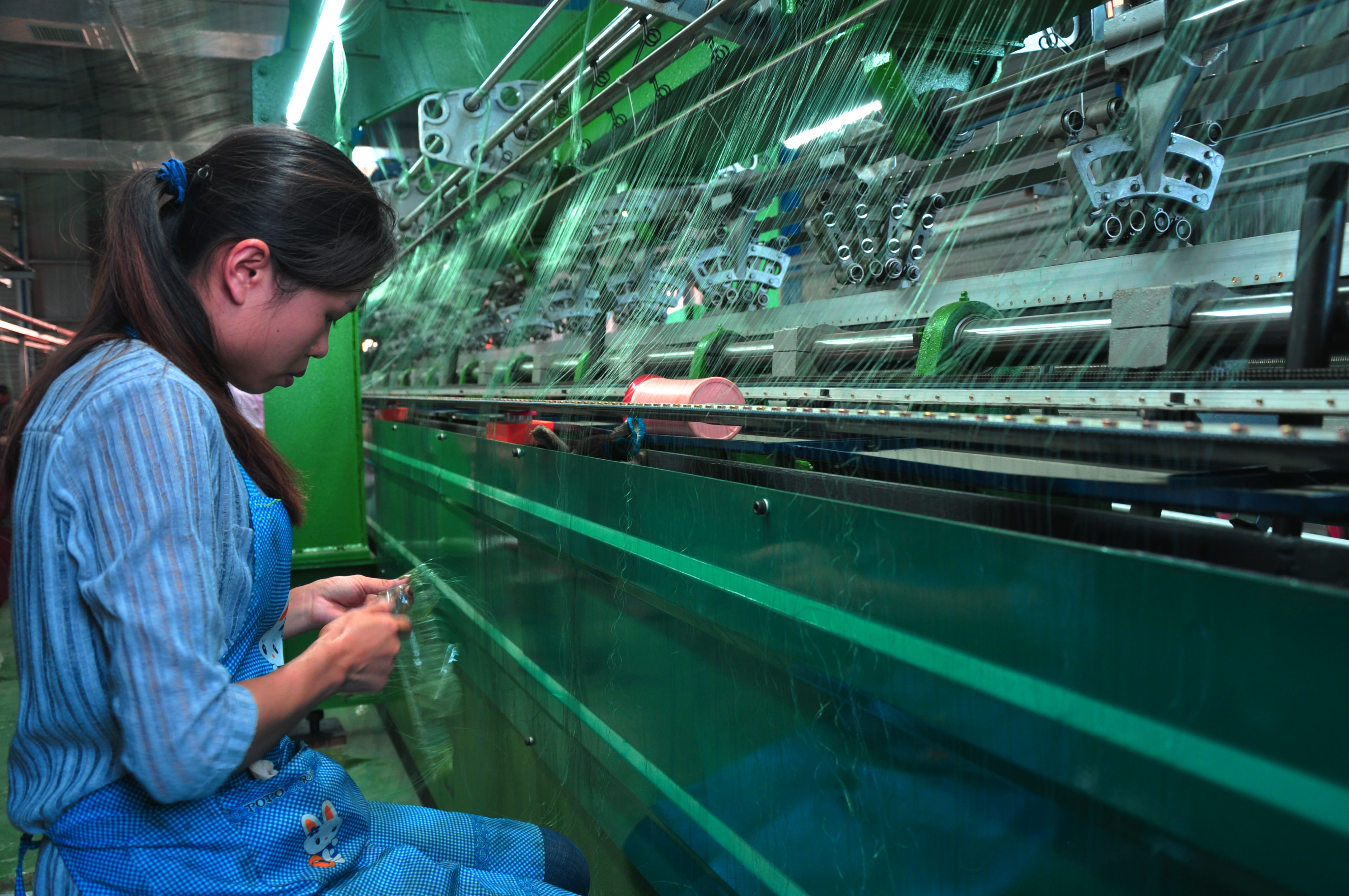 8月3日,一名女工正在魏集鎮(zhèn)張莊村“巧媳婦”企業(yè)——三聯漁網有限公司網布生產車間裁剪網線。據了解,該鎮(zhèn)大力發(fā)展?jié)O網編織、服裝加工、燈籠制造等產業(yè),把工廠辦到村頭,讓留守婦女和貧困群眾在家門口就能打工掙錢。