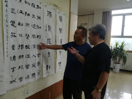 本報(bào)訊 8月21日下午,著名書(shū)法家王明周蒞臨周口報(bào)業(yè)傳媒集團(tuán)書(shū)畫(huà)院參觀指導(dǎo),并揮毫潑墨,留下珍貴墨寶。